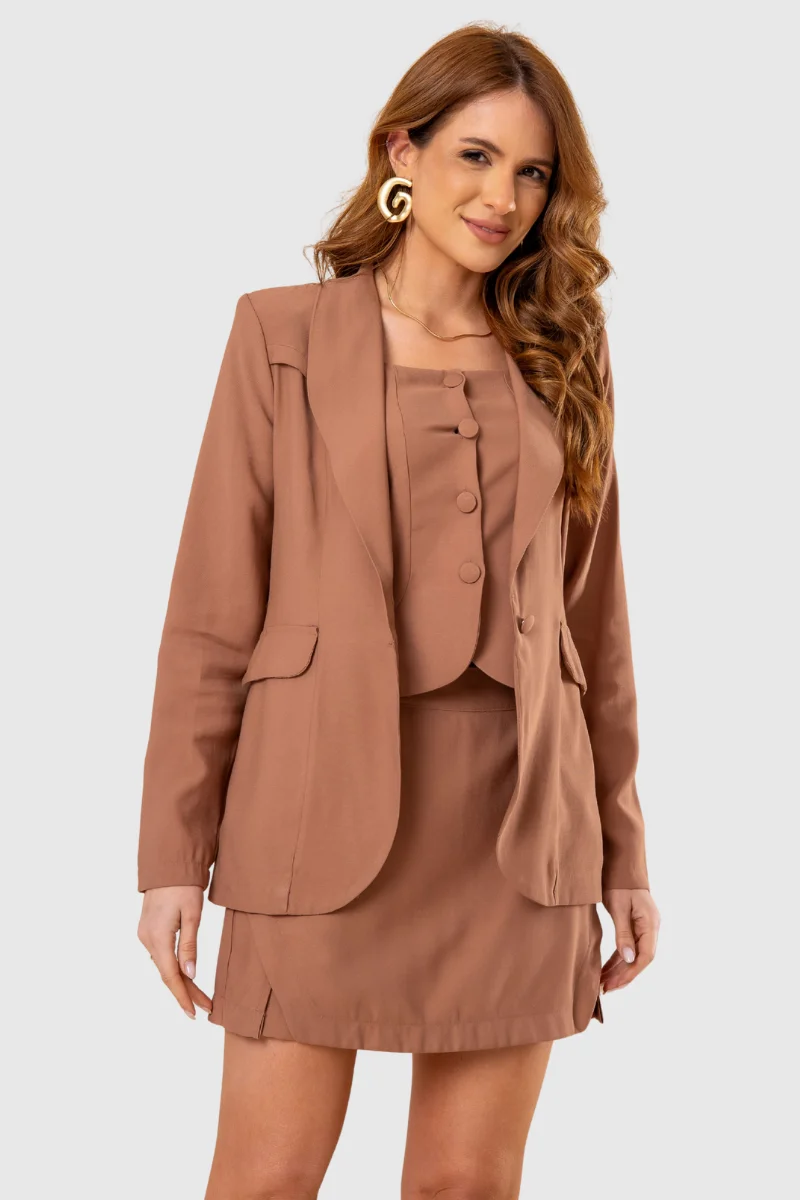 "Caimento estruturado que valoriza a silhueta mantendo o visual sempre alinhado."