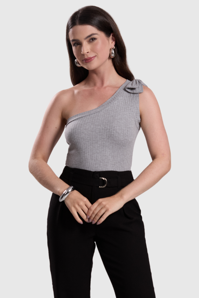 01 blusa feminina assimetrica laco cinza