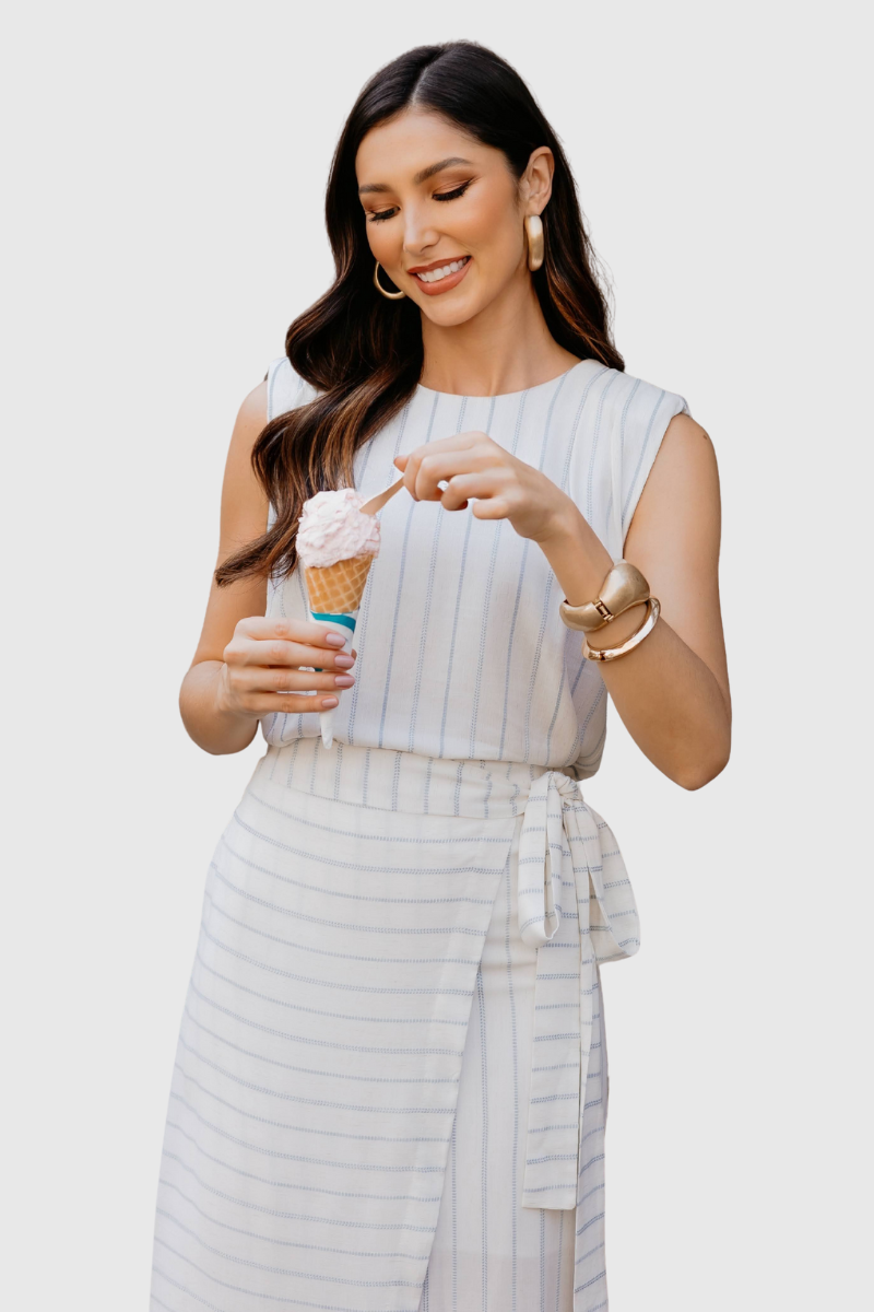 A blusa é confeccionada no tecido Viscose Loango, uma escolha moderna e sofisticada. A alta porcentagem de Viscose e a inclusão do Modal (uma fibra vegetal super macia) garantem um toque que lembra a seda e um caimento extremamente leve e fluido. O toque de Linho finaliza a composição, adicionando um charme de textura natural e frescor.