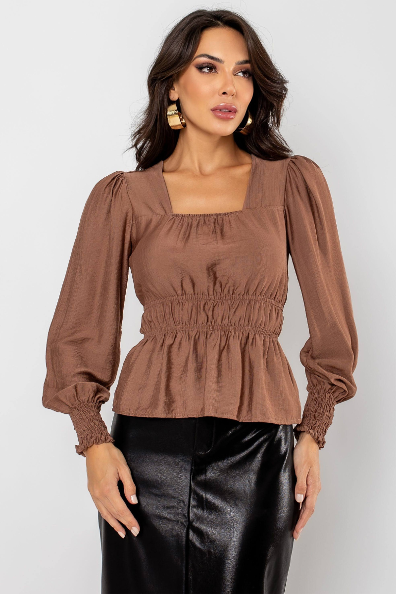 02 blusa feminina manga longa mocha