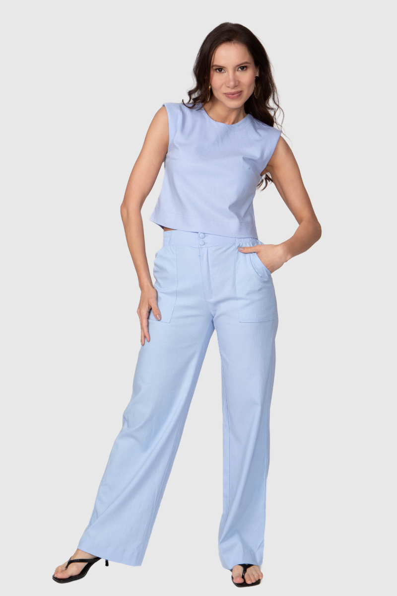 A calça é confeccionada em Linho Premium, um tecido que une 70% viscose, 28% linho e 2% elastano. Essa composição assegura um caimento leve e fluído, com toque macio e excelente respirabilidade, graças à alta concentração de viscose. A adição do linho confere a textura nobre e sofisticada da fibra, enquanto o elastano proporciona a mobilidade e o ajuste confortável, fazendo desta peça uma escolha de praticidade.