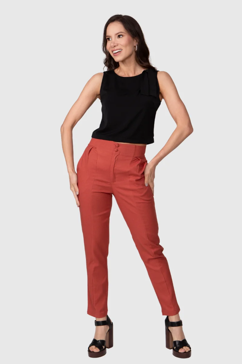 A calça é confeccionada em Linho Premium, um tecido que une 70% viscose, 28% linho e 2% elastano. Essa composição assegura um caimento leve e fluído, com toque macio e excelente respirabilidade, graças à alta concentração de viscose. A adição do linho confere a textura nobre e sofisticada da fibra, enquanto o elastano proporciona a mobilidade e o ajuste confortável, fazendo desta peça uma escolha de praticidade.