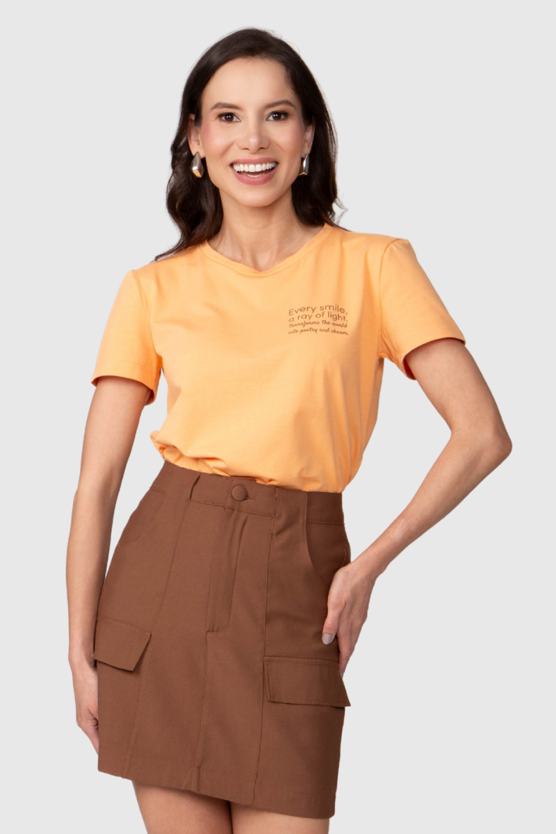 A T-shirt se destaca por seus detalhes únicos, que garantem estilo e um ajuste perfeito. Com a modelagem de camiseta slim e a gola com acabamento em punho, a peça é valorizada por uma serigrafia delicada. A frase "Meu coração é um campo florido, onde o amor se espalha em pétalas" torna a peça ainda mais exclusiva.