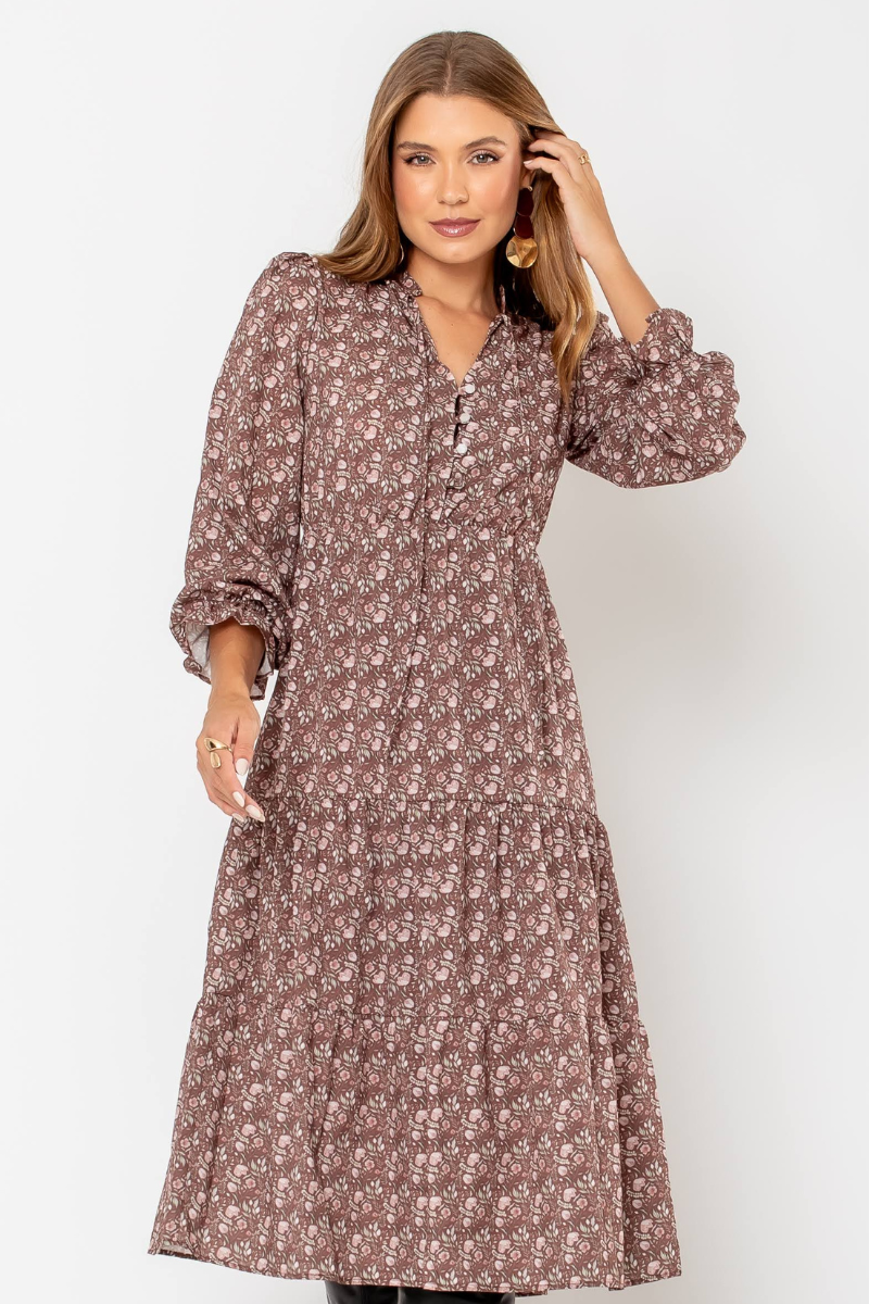 06 vestido feminino midi estampado floral marrom